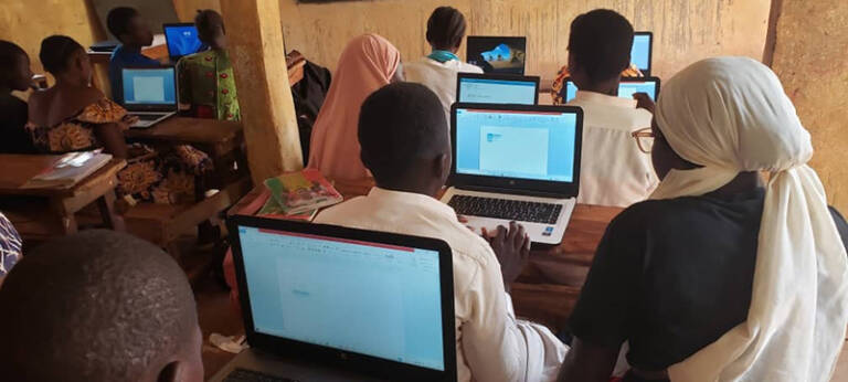 Depuis 2021, Yélé Consulting accompagne VIVA SAN dans le déploiement d’un module d’apprentissage numérique, intégré au parcours éducatif et dispensé à raison de 2 heures par semaine. Le programme pédagogique « École Numérique » vise l’acquisition de compétences concrètes et pratiques du numérique, afin de faciliter l’accès à l’emploi dans un contexte de forte croissance du secteur en Afrique et, pour les élèves qui le souhaitent, de leur permettre d’évoluer vers des métiers du numérique. Découvrez les premiers cours d’informatique en vidéo en cliquant ici.